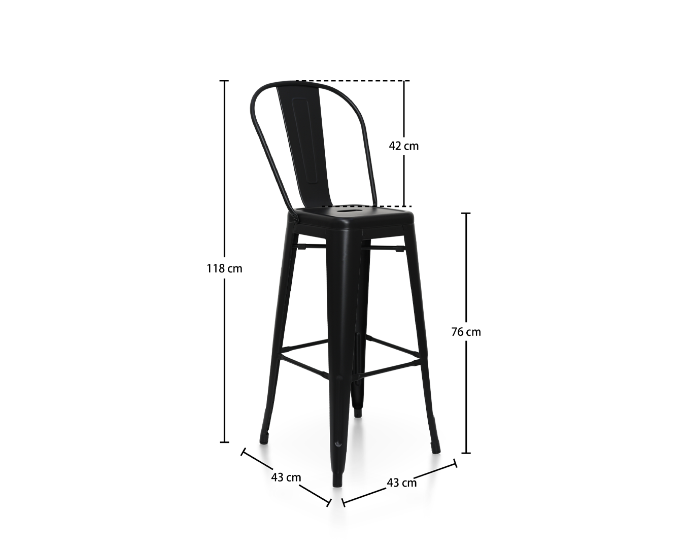 Acasă / Produse / Scaun de proiectare / Black Metal Barstool cu ​​spătar