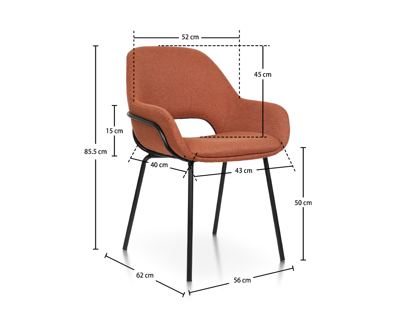 • Cu o bază metalică izbitoare și un amestec frumos de țesătură moale, acest scaun oferă un fler elegant, oferind în același timp un confort optim pentru mese lungi și relaxate. Designul ergonomic și înălțimea scaunului de 50 cm fac o experiență de luat masa ideală, în timp ce cadrul robust asigură o durabilitate de durată.