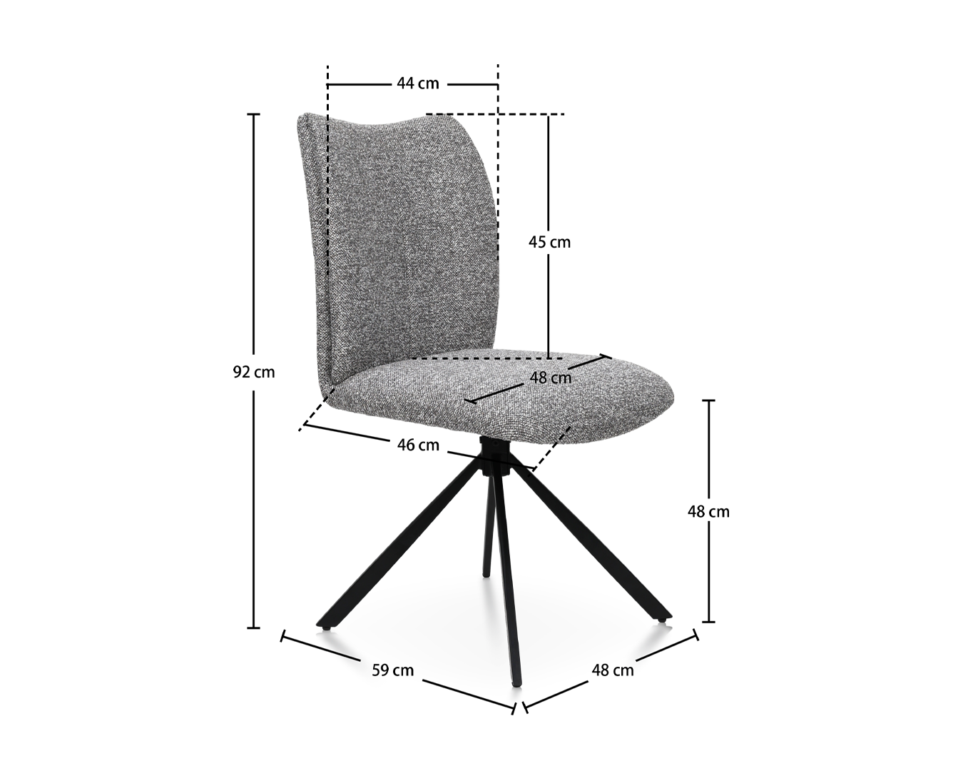 • Proiectat cu linii elegante și țesături sofisticate, acest scaun aduce o atingere răcoritoare, minimalistă pentru orice spațiu de luat masa. Caracteristica pivotantă adaugă versatilitate și ușurință, permițând o mișcare lină în timp ce se bucură de mese sau conversații.