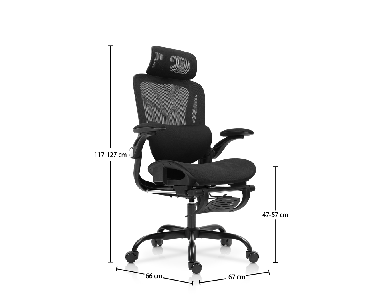 • Scaunul este conceput cu un spătar ergonomic care susține curba naturală a coloanei vertebrale, promovând o mai bună postură și reducând durerile de spate în perioadele de ședere extinse. Cotierele sunt complet reglabile, permițând utilizatorilor să le poziționeze la înălțimea ideală pentru a reduce încordarea umărului. Un suport retractabil încorporat îmbunătățește funcționalitatea scaunului, oferind confort suplimentar pentru relaxare sau atunci când lucrați pentru perioade lungi.