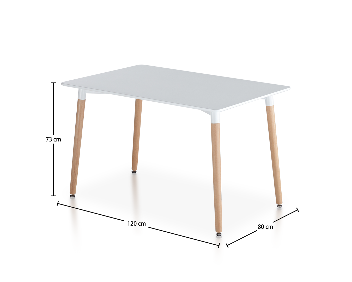 • Picioarele din lemn de fag nu oferă doar un suport robust, ci și introduc un element natural, pământesc, care contrastează frumos cu vârful alb, creând un aspect proaspăt și primitor. La 120 cm lungime, este o dimensiune ideală atât pentru spații de luat masa mici, cât și mijlocii.