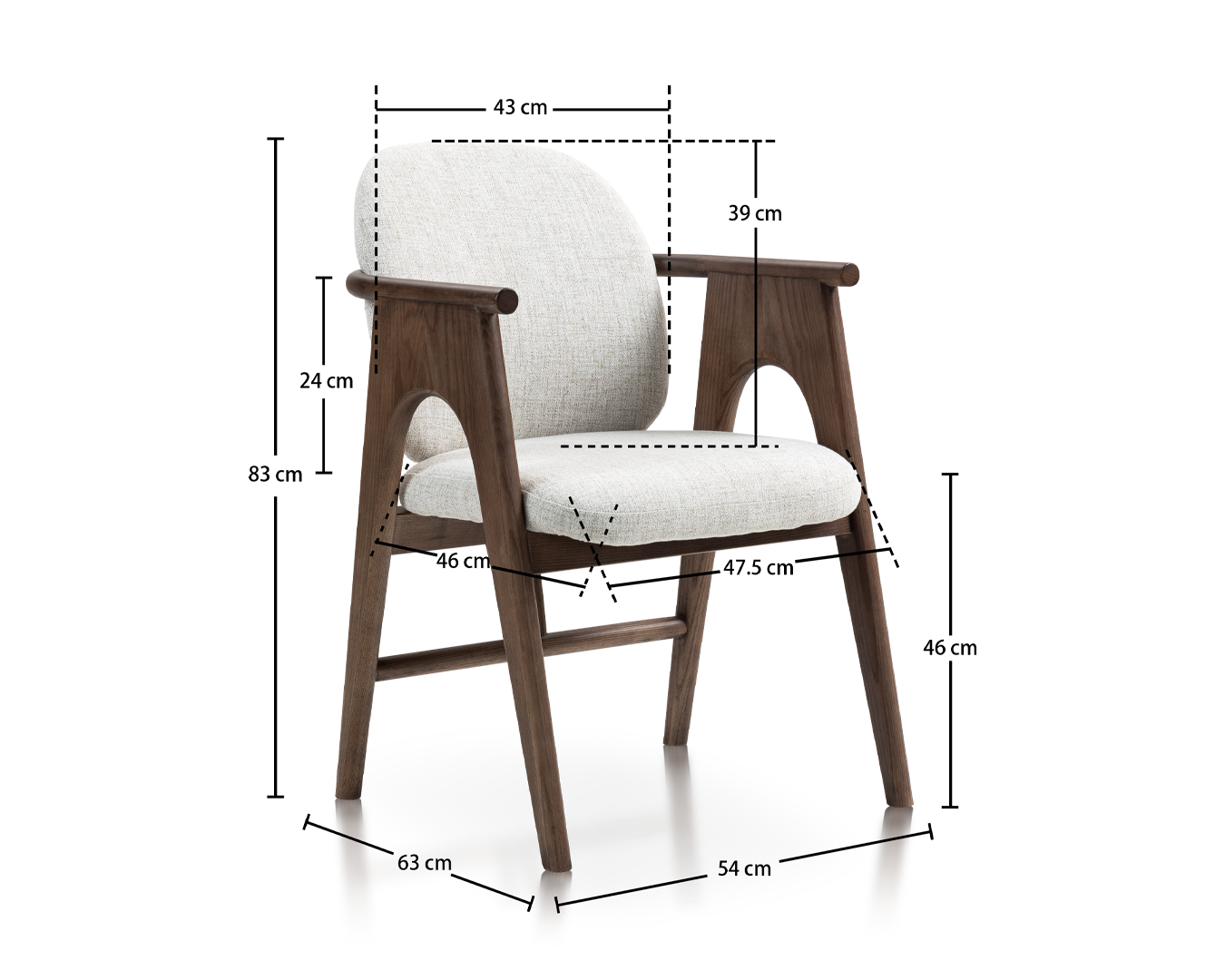 • Confecționat din lemn de cenușă de înaltă calitate, scaunul prezintă un finisaj bogat și cald, care accentuează frumusețea naturală a materialului. Cotierele unice curbate adaugă atât stilul, cât și funcționalitatea, permițându -vă să vă așezați și să vă relaxați într -un confort final.